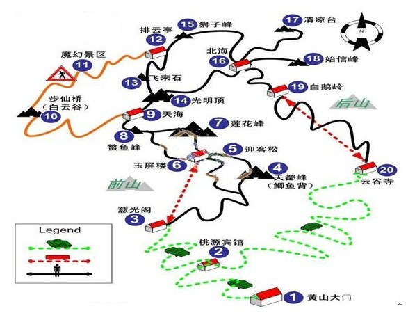2. "交通费用": - 从市区到黄山风景区的交通费用根据出行方式(自驾、公交、火车等)不同而异。 - 黄山风景区内部交通费用,如索道、缆车等,费用也会因路线和季节而有所不同。