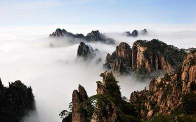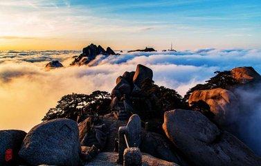 5. "云海与日出":黄山云雾缭绕,有时能遇到壮观的云海。若能早起,登上光明顶等观日地点,观看日出,更是人生一大幸事。