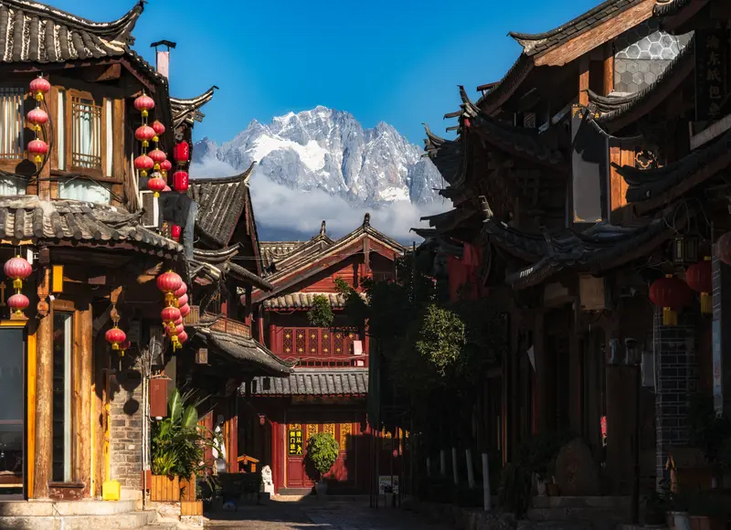 特点:具有独特的纳西族风情,古城内街道依山傍水修建,以红色角砾岩铺就。有许多传统的纳西族建筑,还能欣赏到纳西古乐等传统艺术表演。